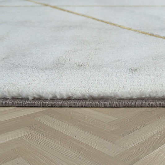 Marble Patten Area Rug in Gold Cream for Living Room with Contour Cut